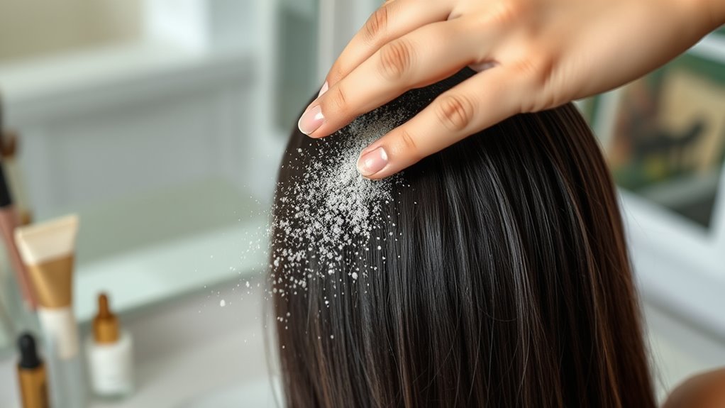 These homemade options absorb oil without harsh chemicals, and you can customize them to match your hair color and scent preferences. Just apply sparingly and brush out excess to prevent buildup and keep your scalp healthy.