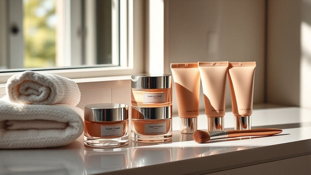 Multi-use tinted creams can streamline your daily routine by combining coverage, hydration, and sun protection into one easy product. They’re great for quick application, whether you use your fingers, a sponge, or a brush to blend seamlessly and achieve a natural look. Choosing the right formula for your skin type and applying with the right techniques can boost your glow while saving time. Keep exploring to discover tips that help you get the most out of your tinted cream.
