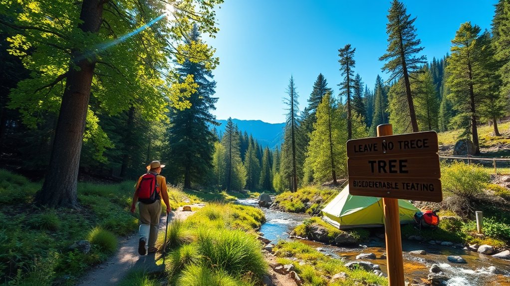 Additionally, choosing eco-conscious products and avoiding disposable plastics can significantly reduce your environmental footprint during travel. Incorporating mindfulness techniques like visualization and deep breathing can help you stay committed to sustainable habits and reduce impulsive waste. These simple actions help reduce landfill waste and protect ecosystems. Small consistent efforts, like choosing eco-conscious products and avoiding disposable plastics, make your travel more sustainable and set a positive example for others. Employing behavioral change strategies can further support your commitment to sustainability. Incorporating recycling practices and proper waste disposal further amplifies your positive impact on the environment during your journeys.