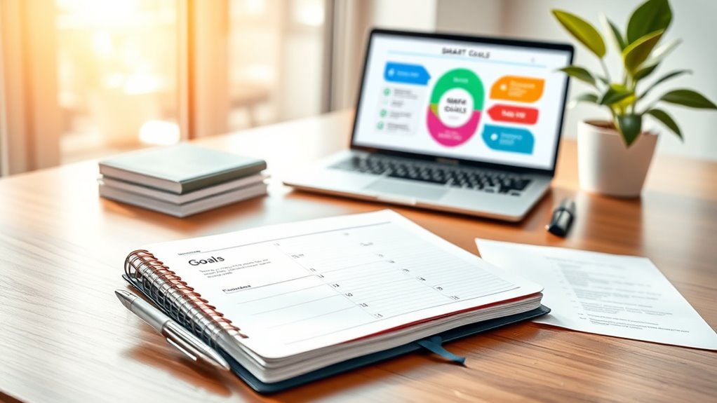 You can use tools like habit trackers, project management apps, and goal visualization apps to monitor your progress effectively. These tools help you stay accountable by providing visual cues of your achievements and deadlines. Regular progress tracking keeps you motivated and focused, making it easier to adjust your efforts if needed. By visualizing your goals, you gain clarity and confidence, ensuring you stay on track toward accomplishing your SMART goals efficiently.