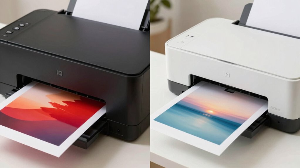 Choosing between dye-sublimation and inkjet printers ultimately depends on what you value most—vibrant, durable keepsakes or affordability and versatility. Think of it as a dance: one leads with radiant color and lasting quality, while the other moves swiftly with budget-friendly ease. By understanding their strengths, you can make a confident choice, turning your cherished memories into timeless treasures. After all, your keepsakes deserve more than just prints—they deserve to tell a story.