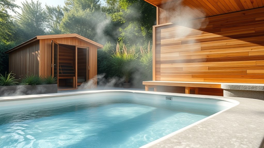 You’re embracing a growing wellness trend that combines sauna use and cold plunges to boost recovery and mental resilience. This routine increases circulation, eases muscle tension, reduces inflammation, and sharpens focus, creating a powerful sense of relaxation and mental clarity. Many find it helps manage stress and enhances emotional well-being over time. If you want to discover how these practices can transform your recovery and mental health, there’s more to explore ahead.