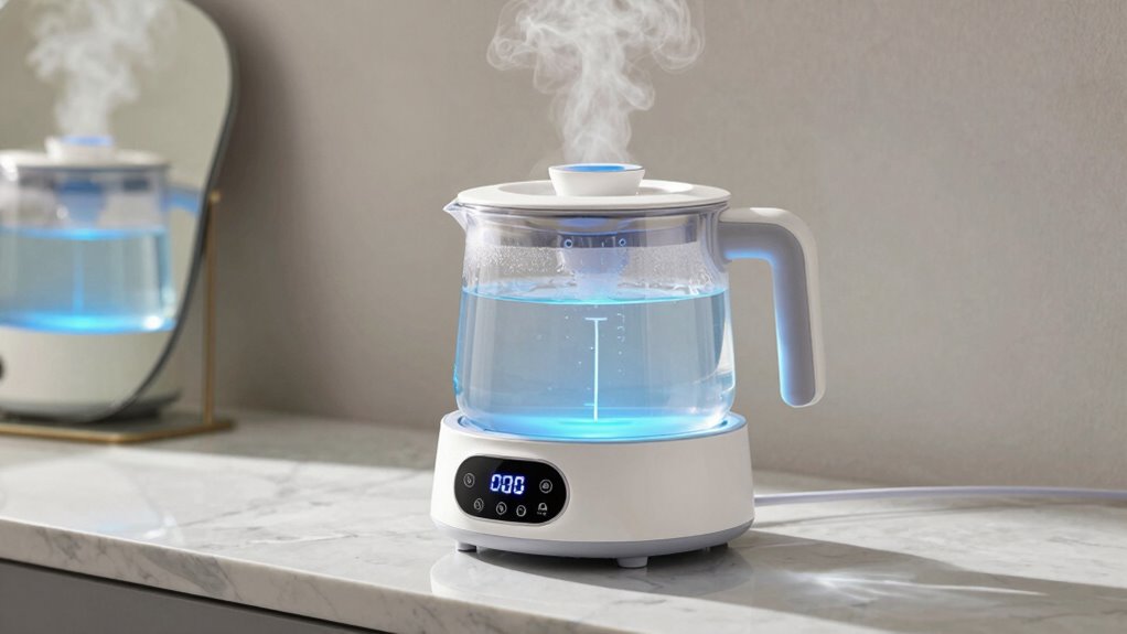 You might think adding ingredients to your steam water will boost benefits, and some herbal infusions or essential oils can indeed enhance your experience. However, research suggests certain oils may clog your steamer or irritate your skin. To be safe, opt for gentle herbal infusions like chamomile or eucalyptus, and use small amounts of essential oils, making sure they’re properly diluted. Always check your device’s guidelines before adding anything.