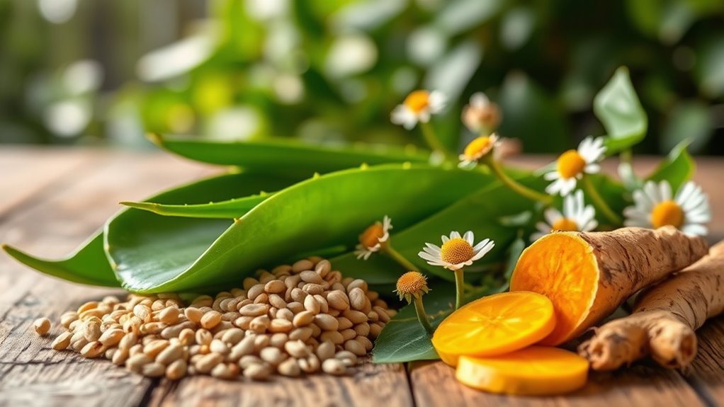 To embrace sustainable and clean skincare, focus on ingredients like natural preservatives such as rosemary extract and grapefruit seed extract, which keep products safe and eco-friendly. Incorporate plant-based antioxidants like green tea extract and vitamin C to protect your skin from environmental damage. These ingredients support a healthier glow while minimizing harm to the planet. By choosing products with these mindful ingredients, you’ll support both your skin and the environment—keep exploring to learn even more.