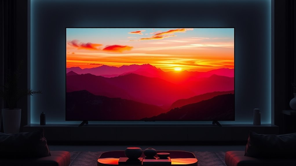 Ever wonder how to guarantee your OLED TV remains a smart investment beyond Black Friday deals? It all starts with checking the warranty and support options. Make sure the TV comes with a manufacturer’s warranty, which typically covers at least a year for parts and labor. Consider if extended warranty plans are available for extra peace of mind. Reliable customer support is essential—look for retailers that offer easy return policies and responsive service channels. Brands that provide online troubleshooting guides or direct customer service lines can save you time and frustration. Finally, verify that warranty details are clearly listed in the product description so you understand what’s covered in case of defects or technical issues. These steps help protect your investment long-term.