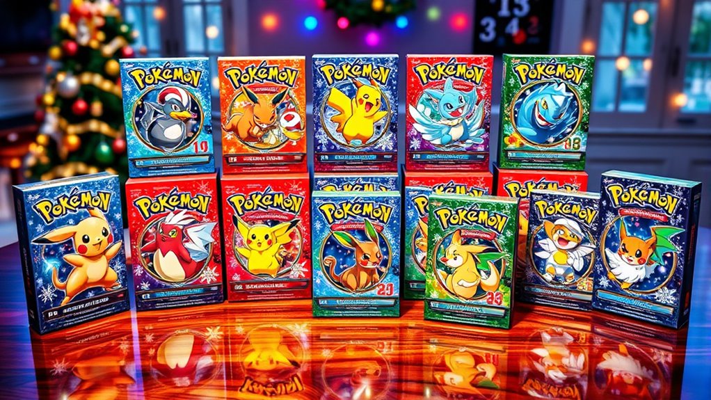 Looking for the top Pokémon TCG holiday calendars for 2025 to celebrate in style? I’ve found 15 fantastic options, from festive booster packs and foil promo cards to themed figurines and fun surprises. Whether you’re into collector sets, game accessories, or seasonal toys, there’s something for everyone. These calendars combine fun, collectibility, and holiday cheer perfectly. Keep going to discover all the details and find the best fit for your holiday festivities.