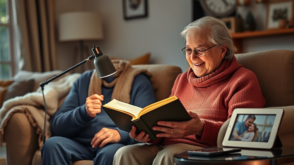 To guarantee the gift is comfortable and easy to use daily, I focus on simplicity and ergonomics. I choose items with large, clear buttons or touchscreens, lightweight designs, and adjustable features. I also make sure to set everything up beforehand, providing clear instructions and personal guidance. Regularly checking in to troubleshoot or adjust the device keeps it user-friendly, making it more likely my parents will enjoy and benefit from the gift daily.