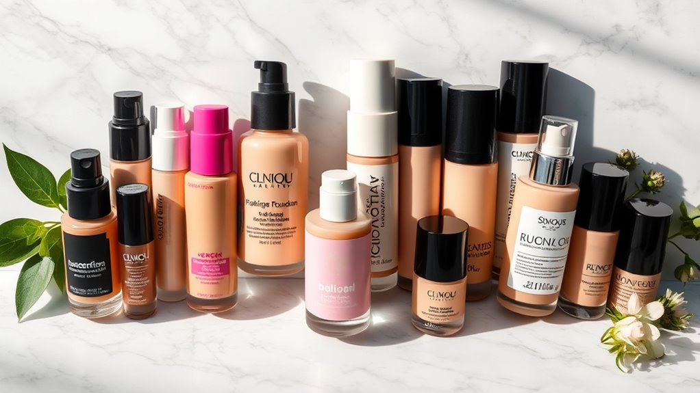 Have you ever wondered how your foundation choices impact the environment? Opting for vegan foundations considerably reduces environmental harm. Since they use plant-based ingredients and avoid animal-derived components, they cut down on the greenhouse gases tied to animal agriculture. Vegan formulas also lower the demand for non-renewable resources like water, land, and feed used in livestock farming. Many brands package their products in eco-friendly containers made from recycled or biodegradable materials, minimizing waste. Additionally, the manufacturing process for vegan foundations often involves fewer toxic chemicals, decreasing pollution. Supporting these products encourages sustainable beauty practices, helping protect biodiversity and reduce ecological strain. By choosing vegan foundations, you’re making a conscious decision to lessen your ecological footprint and promote a healthier planet.